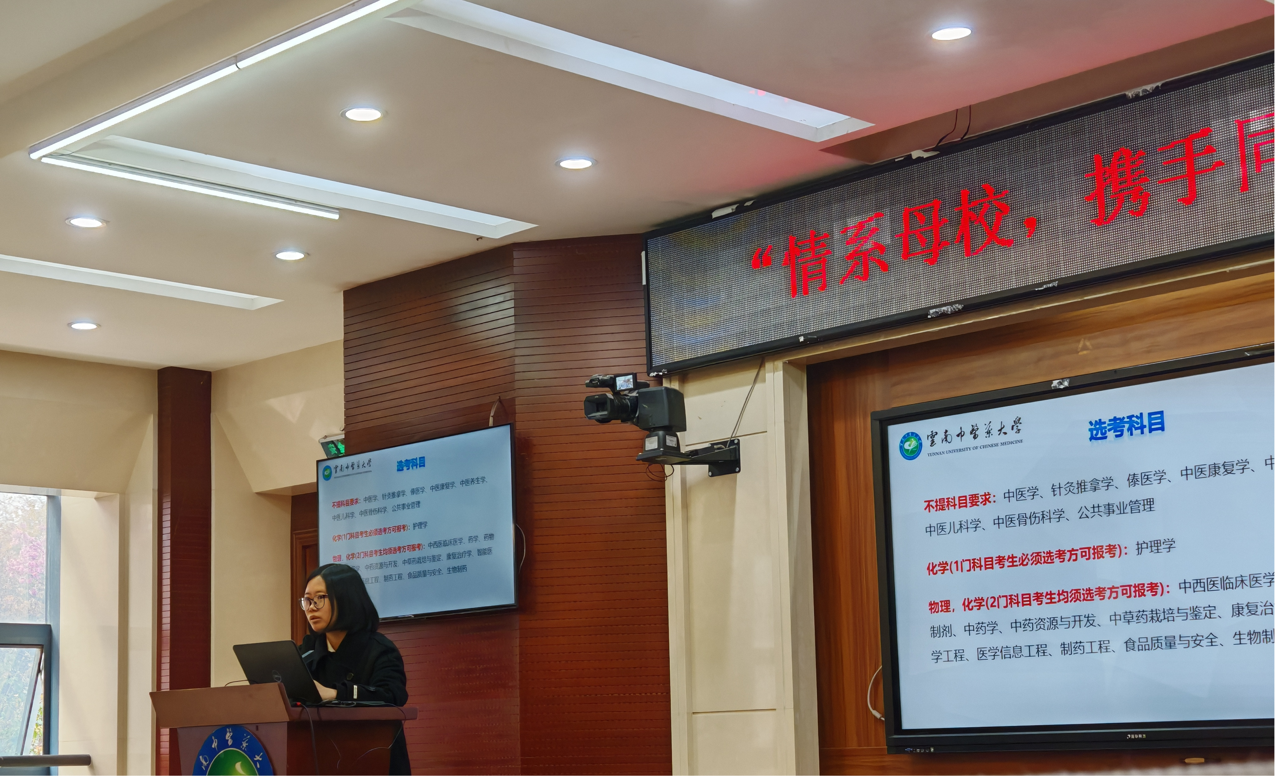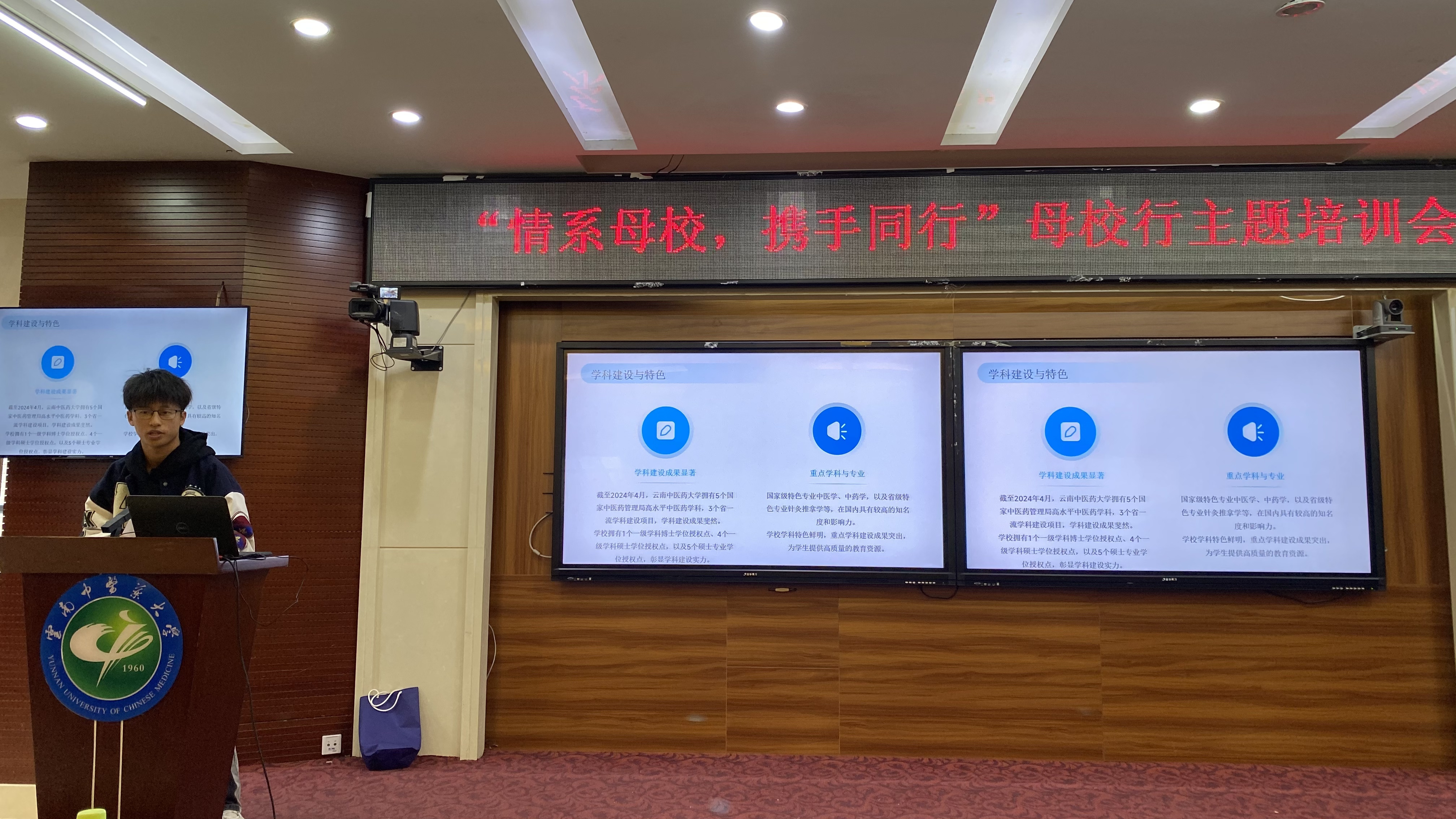 2024年12月31日中午,云南中医药大学本科招生办公室于翰墨楼二楼报告厅顺利开展“情系母校 携手同行”母校行主题培训会,为即将奔赴高中母校的学生宣传团队提供专业指导。