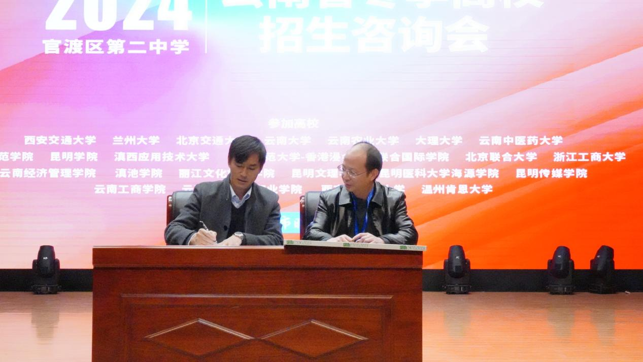 签约仪式现场气氛热烈而庄重,双方代表在协议上郑重签字,标志着两校正式建立紧密的生源合作关系。官渡区第二中学凭借其扎实的基础教育成果和优秀的生源质量,成为我校首块“生源基地”招牌的落户之处,这无疑是对该校多年教育耕耘的高度认可。