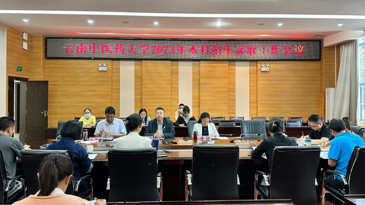 教务处处长赵怀清传达上级关于做好2023年普通高校招生工作的相关精神并安排部署了2023年本科招生录取工作,会议审议了《云南中医药大学2023年普通本科招生录取工作方案》。