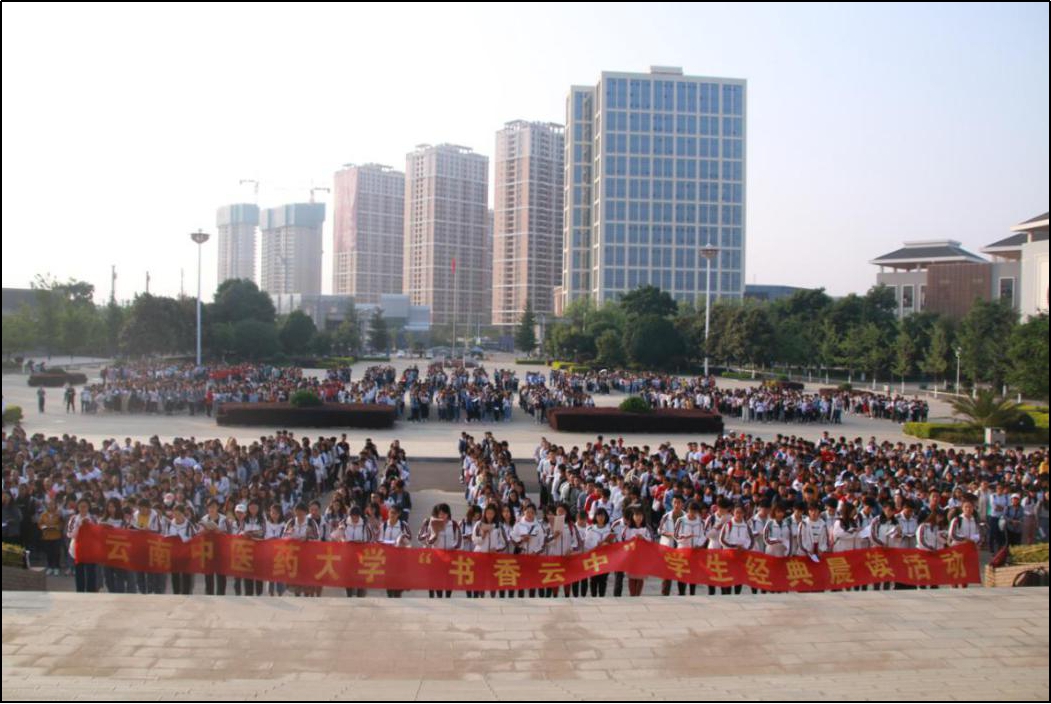 5.倡导全民阅读,营造阅读氛围,弘扬中医文化,厚植爱国情怀,激扬主旋律,图书馆、校团委、校学工部、研究生处、宣传部联合开展云南中医药大学(2019)“书香云中”学生经典晨读活动,活动采用“线下晨读+线上打卡答题”的方式进行,晨读活动启动当天,熊磊校长亲自领读中医经典“大医精诚”,晨读活动开展四期,全校参与人数达8000余人次。
